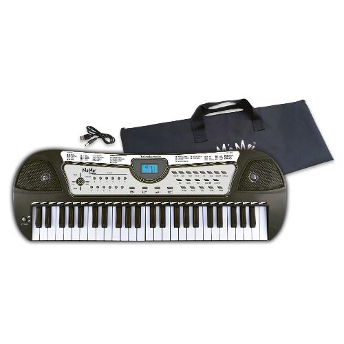 Tastiera digitale a 49 tasti, consigliata per la scuola. 100 suoni, 100 ritmi con facile programma di accordi, 10 canzoni, polifonia a 7 note, sequencer per la registrazione e la riproduzione. Effetti: vibrato, sustain. Volume generale, Start/Stop/Tempo, Fill in, Sync. 4 pad per i suoni di batteria. Presa per adattatore di rete (non incluso). Cavo USB per power bank (incluso). Presa per cuffie e microfono a condensatore (non forniti). Stereo. Display LCD. Borsa per il trasporto inclusa. Batterie, 4 R6 AA, non incluse.