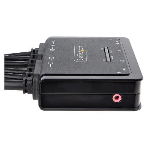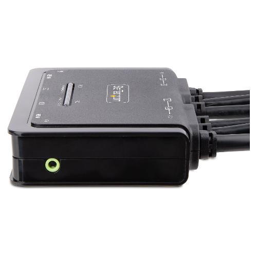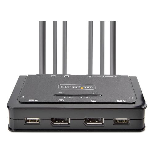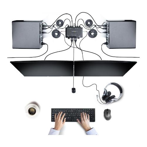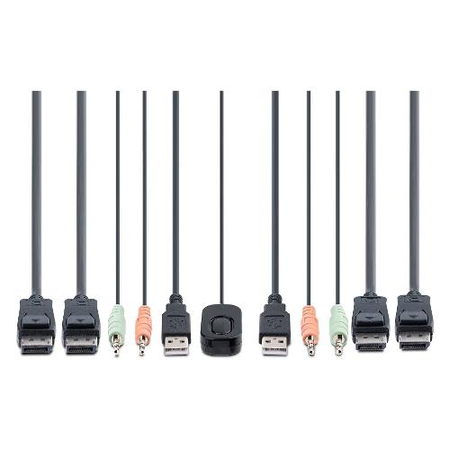 Condividete un mouse, una tastiera e due display DisplayPort 4K 60Hz tra due computer abilitati DisplayPort, utilizzando questo KVM Switch con cavi integrati