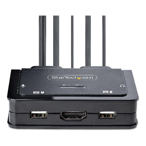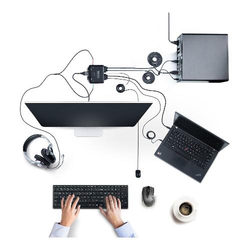 Condividete un mouse, una tastiera e un display HDMI 4K 60Hz tra un computer USB-A e un computer USB-C DP Alt-mode, utilizzando questo switch KVM con cavi incorporati