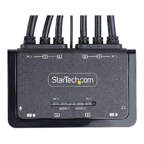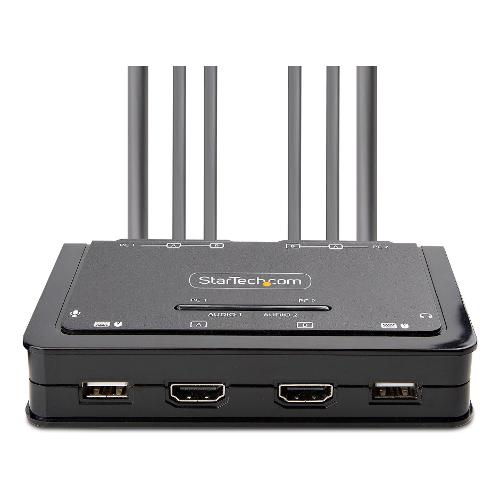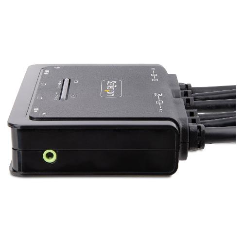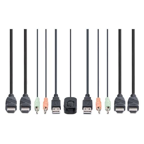 Condividete un mouse, una tastiera e due display HDMI 4K 60Hz tra due computer abilitati HDMI, utilizzando questo KVM Switch con cavi integrati