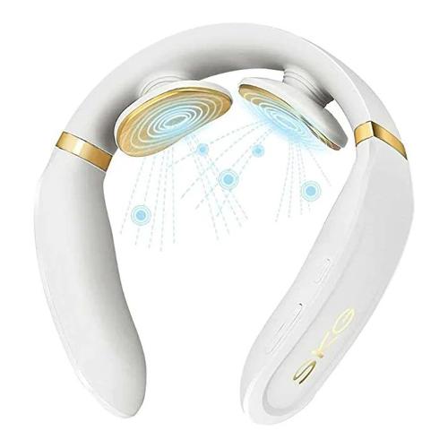 Con il dispositivo per massaggio cervicale SKG i dolori al collo appartengono al passato. Gli impulsi elettrici che simulano un massaggio umano allentano la tensione e il dolore associato. Gli elettrodi mobili a 360° sui cuscinetti in gel stimolano direttamente le cellule nervose sensoriali attraverso impulsi a bassa frequenza per favorire la circolazione sanguigna, ridurre lo stress e ottenere un effetto antidolorifico. Gli elettrodi si adattano perfettamente al collo, garantendo il massimo comfort. Il dispositivo per il massaggio ha una funzione termica riscaldante di max. 43°C, che penetra strato dopo strato nella pelle e nei muscoli procurando così relax. La forma piccola, compatta e maneggevole, così come il peso leggero di soli 120 g e l'uso silenzioso lo rendono il compagno ideale - in viaggio, a casa, in ufficio, in viaggio o al lavoro.