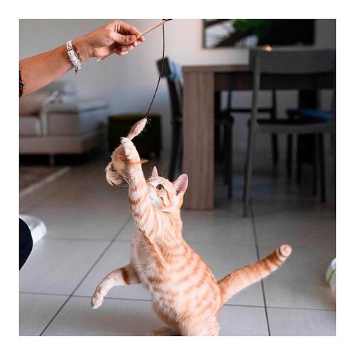 A forma di canna da pesca, tra le ultime proposte di giochi per gatti di ferplast, questo è un efficace antistress che sicuramente saprà stimolare l'interesse del vostro amico felino. Realizzato in legno, questo gioco per gatti presenta un divertente pendente, in fibra naturale e tessuto, che potrete agitare per far saltare il vostro gatto. Simpatico, proposto in tonalità naturali come il bianco o il marrone, diverrà il passatempo preferito dal vostro pet.