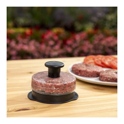 Per ottenere un hamburger piatto e uniforme, riempite la parte superiore (trasparente) con la carne che preferite e pressatela sulla parte inferiore (nera).