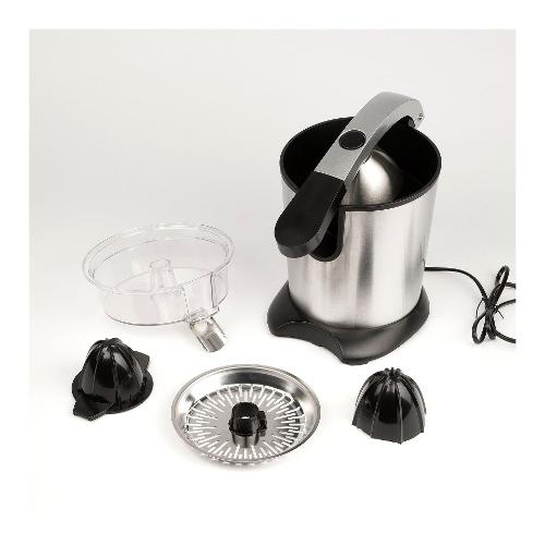Lo spremiagrumi Ribera Inox è ideale nella preparazione di spremute. Con la doppia coppa di spremitura si possono spremere direttamente nel bicchiere agrumi di varie dimensioni sempre con la massima efficacia. La coppa grande è preferibile per pompelmi o agrumi di grandi dimensioni, mentre quella piccola si adatta ad agrumi più piccoli. Il pratico braccio consente di fissare l’agrume ed esercitare una pressione ottimale e grazie al potente motore da 85W, si può ottenere un risultato professionale come al bar. L’estetica moderna e particolarmente curata con corpo inox lo rende gradevole e per questo può essere inserito anche come soprammobile nelle cucine moderne.