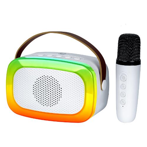 Grazie alla funzione karaoke e al mini microfono wireless compreso nella dotazione, potrai metterti alla prova come cantante e sperimentare i numerosi effetti voce a tua disposizione e, per rendere l’atmosfera ancora più coinvolgente, la cornice illuminata Disco Light multicolor ti regalerà l’impressione di essere su un palco con i suoi giochi di luce.