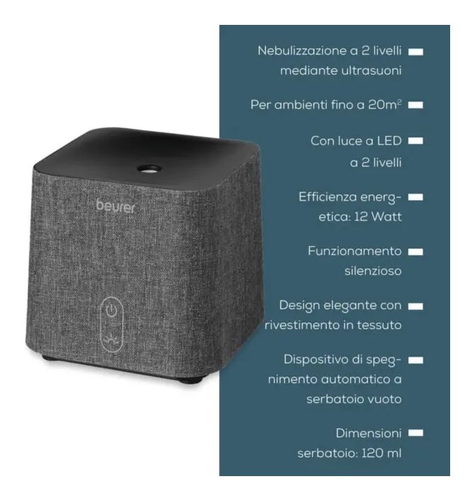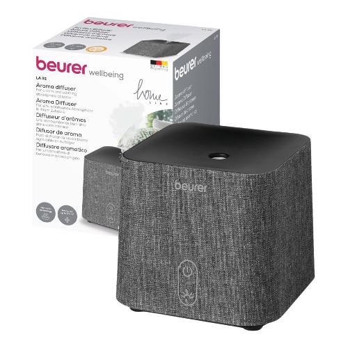 Il diffusore aromatico di Beurer convince per il design elegante con pregiato rivestimento in tessuto e crea un'atmosfera benefica in casa. LA 35 profuma ambienti fino a 20 mq con oli aromatici idrosolubili ed è silenzioso e a basso consumo energetico.