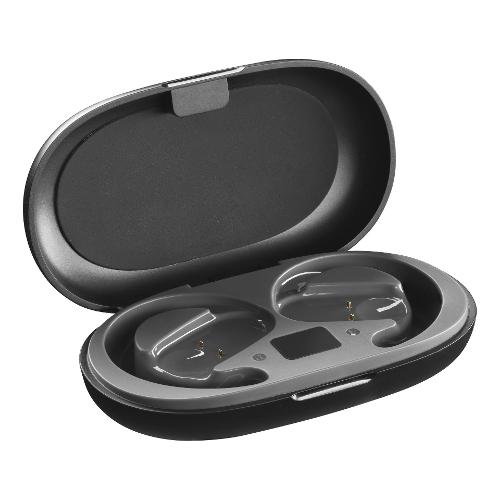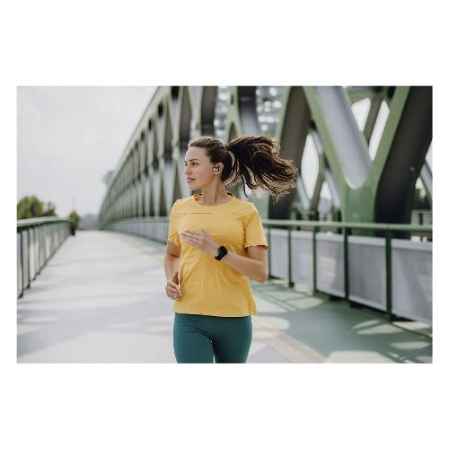 OZONE è l’auricolare true wireless che crea un nuovo modo di essere connessi. Il design Open-ear, unito alla tecnologia Air Conduction, permette di ascoltare la musica ed effettuare chiamate senza mai isolarsi completamente da ciò che circonda: questo risultato viene ottenuto mediante l’utilizzo di una tecnologia che non richiede l’inserimento di un apparecchio dentro il condotto uditivo, lasciandolo di conseguenza libero di percepire i rumori provenienti dall’esterno. Le onde sonore emesse vengono indirizzate all’interno dell’orecchio ma a fare la differenza in questo caso è il posizionamento dell’auricolare, con i suoi diffusori che sono solamente agganciati ai padiglioni auricolari e non incastonati al loro interno. Questa tecnologia garantisce maggiore sicurezza in tutte le situazioni d’uso: su mezzi pubblici, in città o in ufficio. L’auricolare regolabile permette di direzionare con maggiore precisione il suono, garantendo comodità e qualità del suono per qualsiasi tipo di orecchio. OZONE è dotato di certificazione IPX5 che garantisce resistenza a sudore e schizzi ed ha una batteria di lunga durata per garantire un uso continuo durante le giornate più intense.