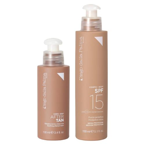 In un kit tutto ciò che serve per garantire protezione e rigenerazione per una pelle abbronzata più a lungo e riparata dai danni causati dai raggi ultravioletti e agenti esterni come salsedine e vento. All'interno del kit troverai l'esclusiva mesh summer bag, perfetta per portare i tuoi solari sempre con te! Il kit contiene: fluido protettivo spf15 150 ml +after tan balsamo lenitivo doposole 100ml + mesh summer bag. Prima e durante l'esposizione solare, distribuire il fluido protettivo uniformemente sulla pelle. Dopo l'esposizione al sole applicare after tan - balsamo lenitivo doposole: applicare con massaggi leggeri su tutto il corpo dopo l’esposizione solare e ogni qualvolta la pelle ne avverte il bisogno.