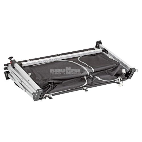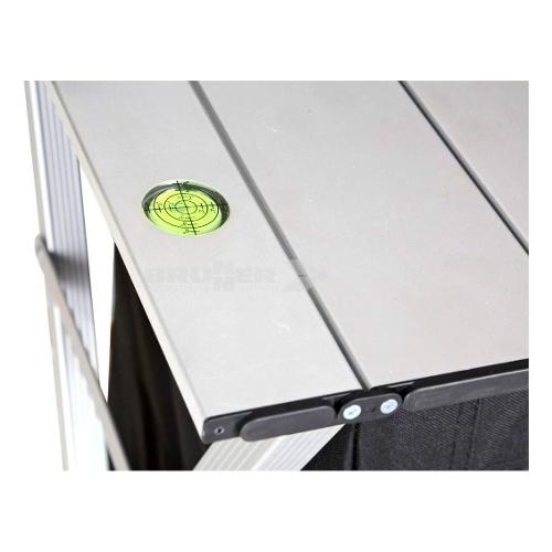 Armadio multifunzionale di nuova concezione con struttura cross in tubolare di alluminio. 1 piedino regolabile in altezza, orientabili e di dimensioni tali da evitare l’affondamento in terreni morbidi. Dotato di 2 scomparti separati e ripiano di lavoro in alluminio resistente (sistema gapless) con livella integrata. Zanzariera di aerazione nella parete posteriore. Include sacca di custodia.