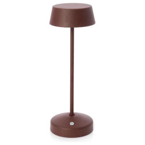 Metallo verniciato a polvere, lampada led, 6 led luce fredda e 6 led luce calda, luce dimmerabile, batteria ricaricabile con base di ricarica in plastica nera e cavo usb nero 0,8 m incluso. Tasto on/off touch. Per uso interno ed esterno