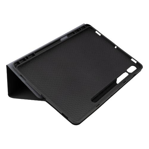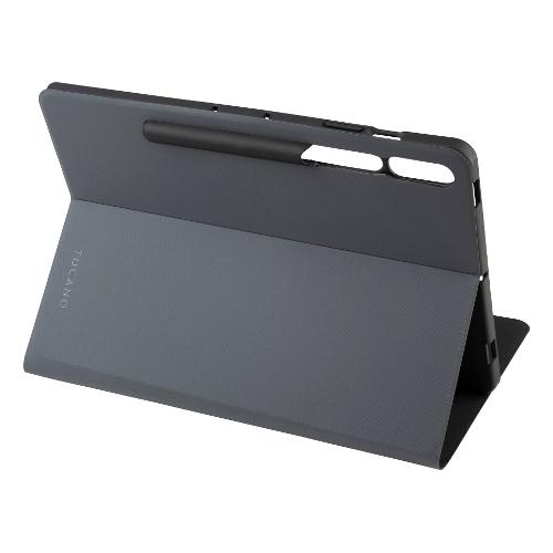 Custodia realizzata con il 35% di materiale plastico riciclato. La copertina frontale si trasforma in un comodo supporto. Vano per S Pen. Sistema On/Off integrato.