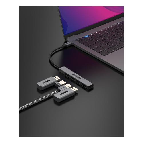 Con il Nano Hub USB-C a 4x USB-A super sottile e portatile puoi trasformare la porta USB-C del tuo notebook in 4 utilissime porte USB-A. Ciò rende questo Hub l'accessorio ideale quando si viaggia.