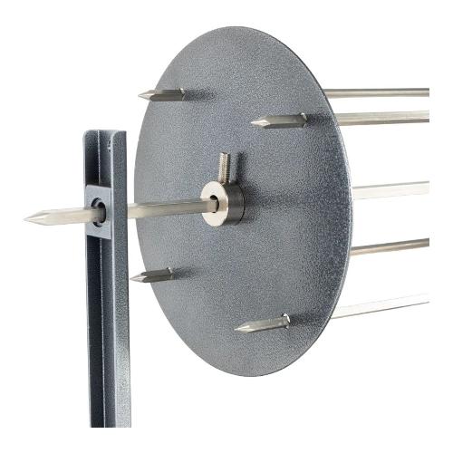 Girarrosto robusto e affidabile per uso domestico Consigliato per 18 Kg di portata - circa 25/30 porzioni per utilizzo al camino-fuoco. Motoriduttore Kenta silenziato: 230 Volt - 50 Hertz 5 ripetizioni al minuto potenza assorbita 28 Watt temperatura utilizzo -5 °C + 80 °C grado di protezione IP00 omologato UI-Csa