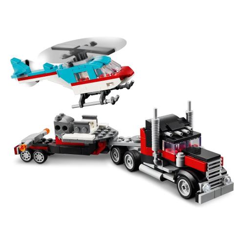Avventure ad alta velocità attendono i bambini e le bambine dai 7 anni in su con il playset autocarro con elicottero lego® creator (31146). I bambini possono utilizzare i 270 pezzi del set 3 in 1 per costruire un fantastico camion a pianale con ruote funzionanti che può trasportare un elicottero lego dotato di rotore con pale mobili sul suo rimorchio.