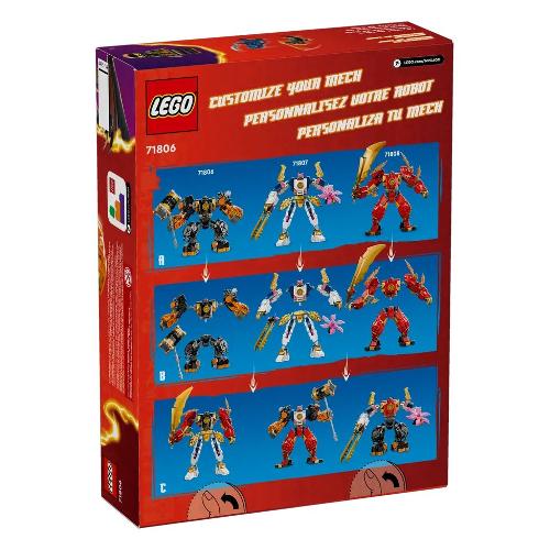 Questo inedito mech consente inoltre ai bambini di costruire il loro mech personale! Le sue gambe, braccia e busto staccabili possono essere combinati con parti di altri 2 mech: il mech elemento tech di sora (71807) e il mech elemento fuoco di kai (71808) (venduti separatamente). I bambini possono divertirsi un mondo a mescolare e ad abbinare le parti per creare un giocattolo d’azione davvero unico.