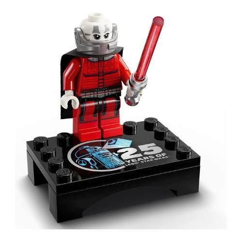 Per creare un’esposizione accattivante, questo set giocattolo collezionabile contiene anche un droide lego r2-d2, una speciale minifigure lego star wars del 25° anniversario di darth malak con spada laser ed espositore e una targhetta informativa su r2-d2.