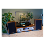 L'MC-160WD è l'impianto stereo HiFi definitivo che soddisfa tutti i tuoi desideri musicali. Questo bellissimo set color legno unisce il calore e l'eleganza del vinile con le moderne tecnologie per un'esperienza di ascolto unica. L'impianto stereo è dotato di due eleganti altoparlanti in legno, ciascuno dei quali offre un suono potente grazie alla sua uscita da 10 Watt RMS. Gli altoparlanti consentono all'MC-160WD di riempire qualsiasi stanza con un suono ricco e bilanciato, mentre puoi controllare facilmente lo stereo con il telecomando incluso.