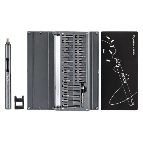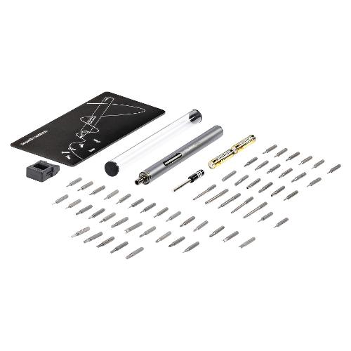 Questo cacciavite cordless è lo strumento ideale per smontare e rimontare i dispositivi elettronici durante le riparazioni. Il kit a batteria include un cacciavite elettrico di precisione (2 batterie AAA incluse), 55 micropunte, un magnetizzatore/smagnetizzatore e un tappetino da lavoro magnetico, il tutto in una custodia da trasporto rigida e resistente. Una gamma completa di punte assicura la compatibilità con la maggior parte delle principali marche di smartphone, tablet e computer laptop, tra cui, a titolo esemplificativo, Apple iPhone, iPad, Macbook, Samsung Galaxy, HP e Acer Chromebook, Lenovo ThinkPad.