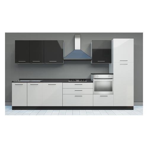PERLA Dx Cucina Bianco ottico e Grigio pepe lucido (360cm)