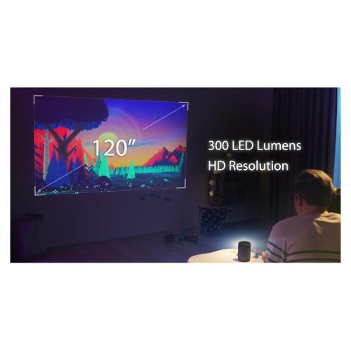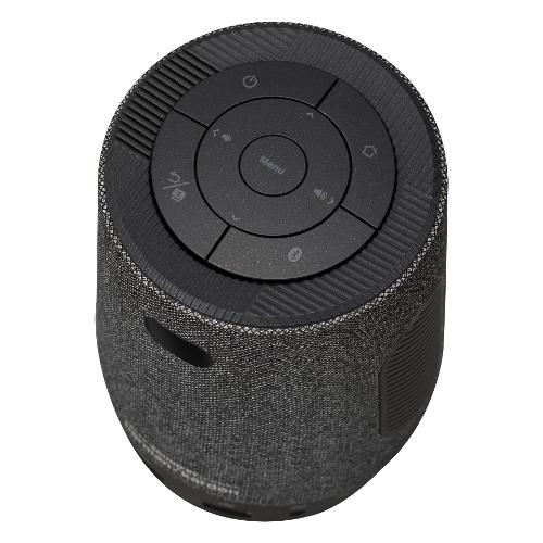 Proiettore portatile compatto e leggero con design in tessuto. La batteria integrata da 6000 mAh fornisce 3 ore di proiezione video o 12 ore di riproduzione audio.
