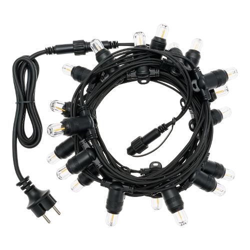 Catena lineare party light 20 lampadine led e14 papaya filamen ø18mm, serie led pl (pml) professional 2pins, prolungabile (max 16 pz / 320l / 96m), lampade sostituibili, luce fissa,