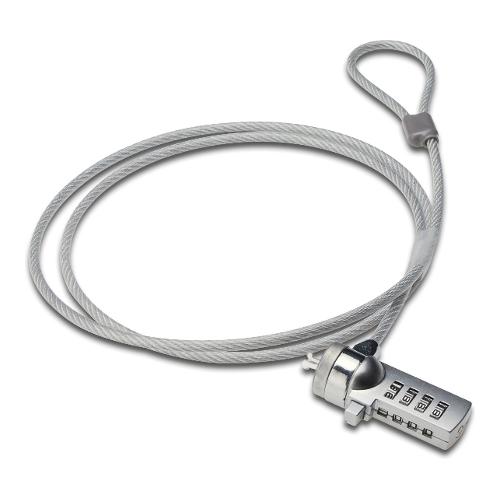 Il lucchetto di sicurezza protegge il notebook e il vostro desktop pc da un facile furto. Funziona come un lucchetto per biciclette. Basta arrotolare il cavo in acciaio da 1,5 metri intorno ad un oggetto immobile come un tavolo o scrivania ed infine comporre una combinazione di numeri per l’attivazione del blocco.
