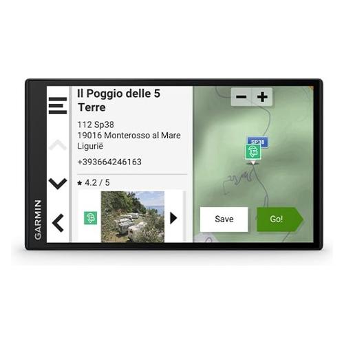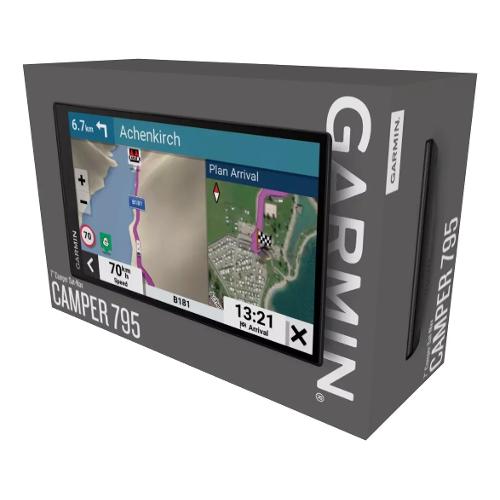 Con Camper 795 e il suo ampio schermo potrai percorrere percorsi personalizzati in base alle dimensioni e il peso del tuo veicolo e utilizzare le immagini satellitari BirdsEye per arrivare in tutta semplicità al prossimo campeggio o area attrezzata..