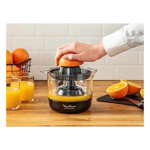 Uno spremiagrumi compatto ma capiente grazie ai suoi 450ml di capacità: design compatto con avvio/arresto automatico alla pressione della frutta sul cono, 2 modalità di rotazione per una miglior spremitura del frutto, facile da usare e facile da pulire.