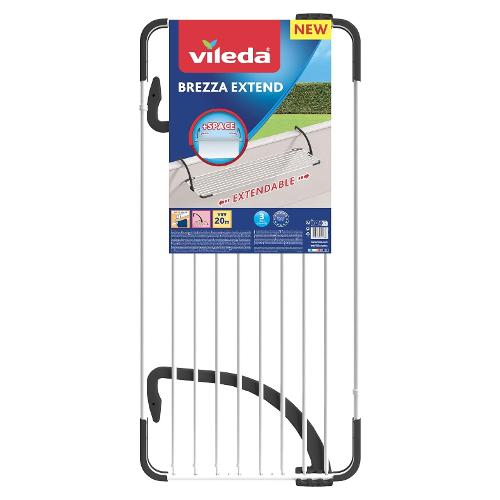 Brezza extend è il nuovo stendibiancheria estensibile da balcone di vileda. La griglia può essere allungata da un minimo di 118 cm fino ad un massimo di 189 cm, garantendo così 20 m di spazio di stenditura, dove ogni capo può trovare la sua collocazione.