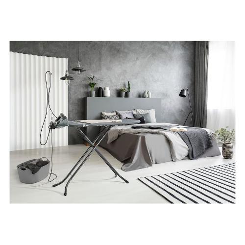 Con l'asse da stiro air board m black plus di leifheit anche l'enorme compito di stirare diventa un gioco da ragazzi. Unisce un accattivante design in nero-antracite a un'eccezionale funzionalità. La leggerissima superficie di stiro in plastica speciale da 120 x 38 cm rende l'asse da stiro facile da aprire, chiudere e riporre. Il rivestimento thermo-reflect dell'air board m black plus offre una innovativa riflessione di vapore e calore, creando un effetto di stiratura su due lati. Così si risparmia tempo ottenendo allo stesso tempo ottimi risultati. Per il massimo comfort, l'asse da stiro leifheit è regolabile in altezza per consentire una stiratura comoda per la schiena, all'altezza ottimale. Il poggiaferro fisso con porta-cavo e presa elettrica permette di posizionare il ferro in modo sicuro. La struttura stabile offre un supporto sicuro, mentre il blocco per il trasporto rende l'asse da stiro air board m black plus facile e sicura da trasportare. Il modello è adatto sia ai ferri da stiro tradizionali che a quelli a vapore. Il copriasse certificato oeko-tex completa questo prodotto di qualità e garantisce una stiratura senza pensieri.