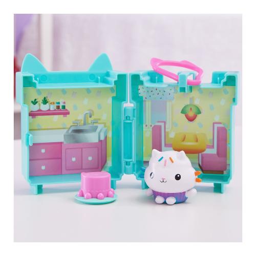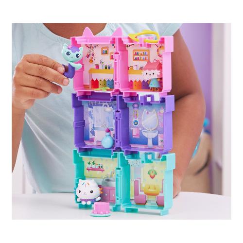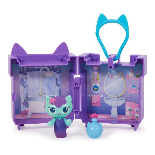 Porta il divertimento sempre con te con il set di gioco agganciabile di gabby's dollhouse. Questo set di gioco portatile include la gat-tastica amica di gabby, siregatta, nel grazioso bagno della casa delle bambole, e una stanza in miniatura con una clip in plastica per lo zaino, per portarlo con te ovunque. I fan della serie la casa delle bambole di gabby adoreranno agganciare questo mini set di gioco a una borsa o a uno zaino, per portare sempre con sé emozionanti avventure a tema: in auto, in treno o persino in aereo. Aprilo e troverai una mini stanza, per rivivere le tue scene preferite del cartone. Proprio come fa gabby all'inizio di ogni episodio, apri la scatola con sorpresa e scopri l'accessorio al suo interno, un flaconcino di profumo da utilizzare nelle tue avventure. Al termine del gioco, metti siregatta e i tuoi accessori all'interno del set di gioco, chiudilo, quindi aggancialo allo zaino fino a quando non vorrai giocare ancora. Per altre avventure entusiasmanti nella casa delle bambole, colleziona tutti e tre i mini set di gioco impilabili di gabby's dollhouse, come la sala hobby di baby scatola e la cucina di gatto dolcetto (ognuno in vendita separatamente). Scansiona il codice qr all'interno della scatola con sorpresa per sbloccare un premio speciale nell'app gratuita di gabby's dollhouse (disponibile su ios e android). Gli animali di peluche, le bambole, i personaggi giocattolo e i set di gioco di gabby's dollhouse sono pensati per i bambini e le bambine che amano usare l'immaginazione per creare la propria casa delle bambole.