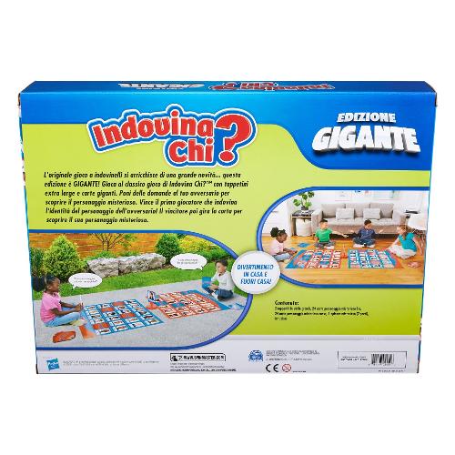 Provare a indovinare è divertentissimo con la versione gigante di questo iconico gioco da tavolo per bambini hasbro. Indovina chi? Arriva in formato gigante per incrementare il divertimento. Questo gioco classico in versione ingrandita è ottimo per incontri di gioco all'aperto o feste di compleanno. Gioca al chiuso o all'aperto con questo gioco da tavolo per bambini di 8-12 anni. Sia in estate che in inverno, puoi giocare a questo gioco per bambini ovunque desideri. Grazie ai tabelloni illustrati in vinile giganti il divertimento a casa o all'aperto è assicurato. Le regole di questo gioco divertente sono semplici. Poni domande all'avversario per scoprire il personaggio misterioso. Vince chi indovina prima dell'altro l'identità del personaggio avversario. Il vincitore poi gira la carta per rivelare il suo personaggio misterioso. Poni domande come: 'il tuo personaggio ha gli occhi blu?' Oppure 'il tuo personaggio indossa un cappello?'. Questo gioco per tutta la famiglia per bambini e adulti è adatto a 2-4 giocatori, dagli 8 anni in su. È facilissimo da usare come gioco per 2 giocatori o come gioco multigiocatore. Preparati a un sacco di divertimento usando tanta immaginazione con indovina chi? Edizione gigante. Spin master porta a casa tua il divertimento dell'intrattenimento per bambini offrendo una gamma di giochi e giocattoli per bambini, tra cui giocattoli per bimbi piccoli, giocattoli per bambine e giochi da tavolo. Colleziona i tuoi peluche preferiti, nonché giocattoli tattili, auto radiocomandate, action figure, bambole con accessori e tanto altro. Regali speciali per adulti, giocattoli per bambini e bimbi piccoli e non solo: trova facilmente regali di compleanno sfogliando il nostro ricco catalogo. Se ancora non ti basta, scopri i giochi per bambini, i giocattoli da piscina, i giochi per esterni e i veicoli monster truck per qualsiasi momento dell'anno. Gioca con la creatività con giochi artistici, giocattoli per le costruzioni e auto radiocomandate oppure scegli giochi da fare seduti al tavolo come puzzle per adulti o giochi di carte. Esplora il parco giochi di spin master.
