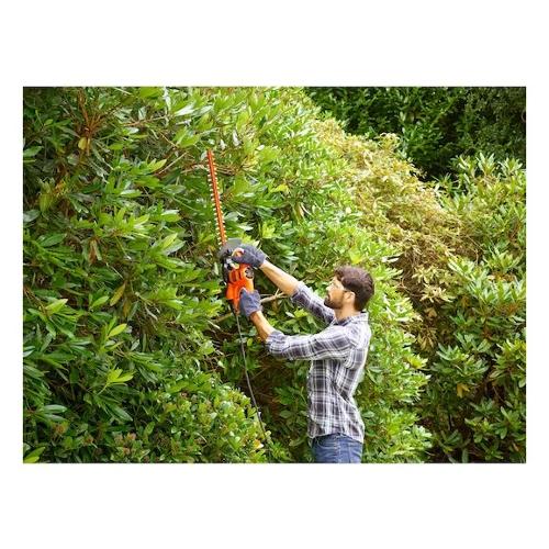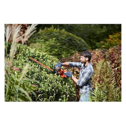 Tagliasiepi ideale per la potatura di siepi di piccole dimensioni, struttura bilanciata e compatta per il massimo comfort in uso nella cura della siepe, impugnatura a T e guardia di sicurezza per la visibilità durante il taglio per agevolarne l'utilizzo.
