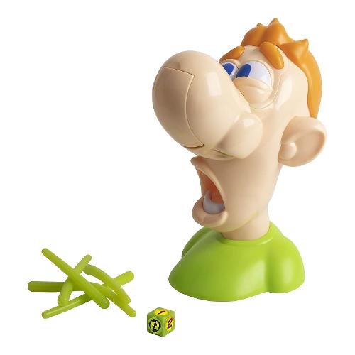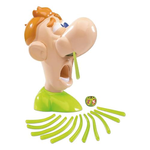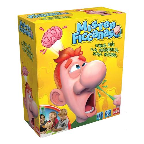 Mister Ficcanaso ha un raffreddore esplosivo!!!! Aiutalo a liberare il naso..... Bleah …ma fa molta attenzione!!! …o gli esploderà il cervello!! Sii prudente o sarai eliminato! Apri lo "sportello" del naso di Mister Ficcanaso e collega la "candela del naso" ad anello nella scanalatura del grilletto. Posiziona il resto delle candele all'interno dell'area del naso. Metti il ​​cervello nella testa rivolto verso l'alto e tienilo premuto mentre chiudi la testa. Il giocatore più giovane lancia il dado per vedere quante "candele" scegliere dal naso di Mister Ficcanaso. Una delle candele se tirata fuori dal naso farà starnutire Mister Ficcanaso sparando fuori dalla testa il suo cervello! Finito di giocare rimetti a posto il suo cervello, rimetti tutte le "candele" nel naso per giocare un altra volta.
