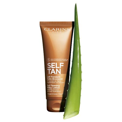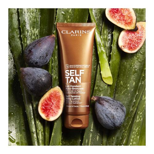 Self tan latte autoabbronzante per viso e corpo - dona una pelle abbronzata e idratata il latte 2-in-1 perfetto per prepararsi all’estate. Dona alla pelle un’abbronzatura incredibilmente naturale, uniforme e duratura grazie al selftancomplex, una combinazione di dha di origine naturale ed eritrulosio. La sua formula arricchita con estratto di fico biologico idrata la pelle per 24 ore*. La pelle è sublimata, idratata a lungo, morbida e levigata per sfoggiare più a lungo la sua splendida luminosità dorata. La sua texture lattea dal delicato profumo di vacanze si fonde istantaneamente sulla pelle: l’estate dura tutto l’anno! *test di cinetica dell’idratazione - 12 persone. Applicare sulla pelle precedentemente esfoliata e idratata effettuando movimenti circolari con tutta la mano. Evitare le sopracciglia e la radice dei capelli. Lavarsi le mani con sapone dopo l’uso.