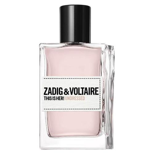 This is her! Undressed eau de parfum, la nuova fragranza femminile di zadig&voltaire. In this is her! Undressed le note di fiori d'arancio, sensuali e solari, si combinano con i toni di ylang-ylang per creare un profumo originale esaltato ulteriormente dalle note di legno di sandalo. Le note di zenzero provocano un'esplosione di luminosità, accentuata da un avvincente accordo di pelle salata. Un profumo da donna luminoso e sensuale, con note di fiori d'arancio e zenzero fresche e vibranti. Una fragranza che dona una sensazione di pelle scaldata dal sole, avvolta dalle note di ylang-ylang e messa in risalto dall'accordo salato. Una fragranza femminile dalla firma intima, grazie al muschio e all'accordo di legno di sandalo. This is her! Undressed, un profumo femminile floreale boisé e speziato creato da sidonie lancesseur per una donna forte, libera, che infrange le regole. Una fragranza intima e sensuale, personale e avvolgente.