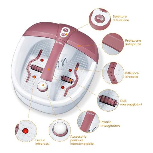 Il pediluvio con applicazione magnetica e pedicure garantisce il relax per i vostri piedi. Il filtro aromatico consente di utilizzare ulteriori prodotti da bagno per un "wellness" domestico.