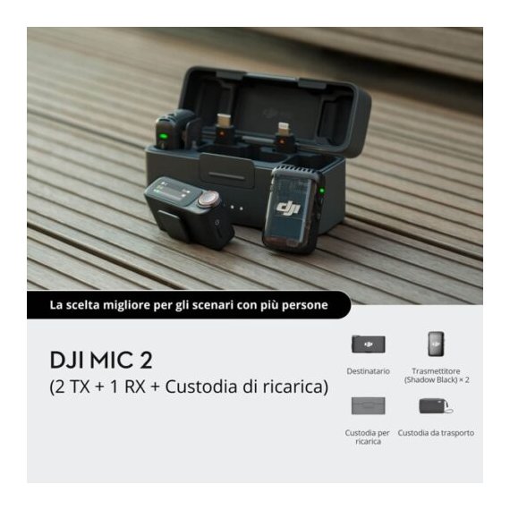 Cattura audio autentici con un completamente aggiornato e sempre pronto all’uso DJI Mic 2. Grazie alle sue funzionalità premium, tra cui la registrazione audio di alta qualità, l’eliminazione intelligente del rumore e il supporto per la registrazione interna in float mobile a 32 bit, DJI Mic 2 ti consente di produrre contenuti audio bilanciati e ricchi di dettagli perfetti per vlog, interviste, dirette streaming e molto altro ancora. Batteria da 18 ore
