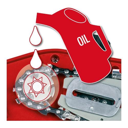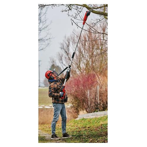 Con il potatore elettrico einhell gc-ec 7520 t hai tutto quello che serve per tagliare anche i rami alti in modo rapido e comodo da terra. In un batter d'occhio con il tuo potatore ad asta di facile utilizzo rimetterete a posto il fogliame del vostro giardino. La portata ottimale è assicurata da una maniglia telescopica in alluminio. Il funzionamento ergonomico è favorito da un'ulteriore area di appoggio gommata. Non sono necessari strumenti aggiuntivi per tendere la catena. Un'imbracatura regolabile promette una vestibilità ideale e un maggiore comfort di lavoro per ogni utente. Anche una clip antistrappo integrata per il cavo contribuisce alla sicurezza sul lavoro. Il serbatoio dell'olio del sistema di lubrificazione automatica della catena è dotato di un'ampia finestra che consente di controllare rapidamente il livello dell'olio.