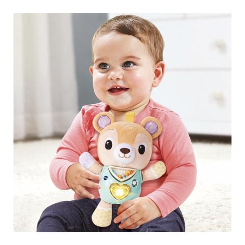 Il cuoricino luminoso sul pancino da premere permette di ascoltare divertenti frasi, simpatiche canzoni e dolci melodie.
