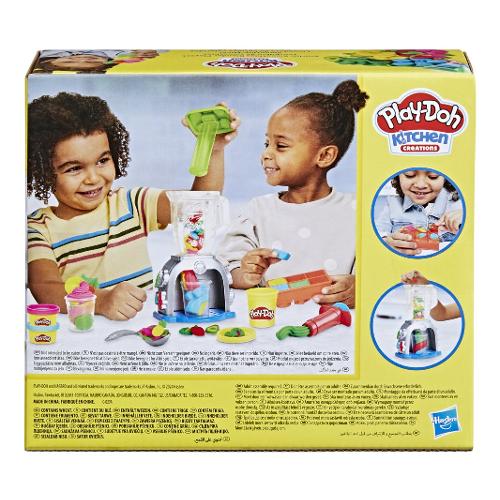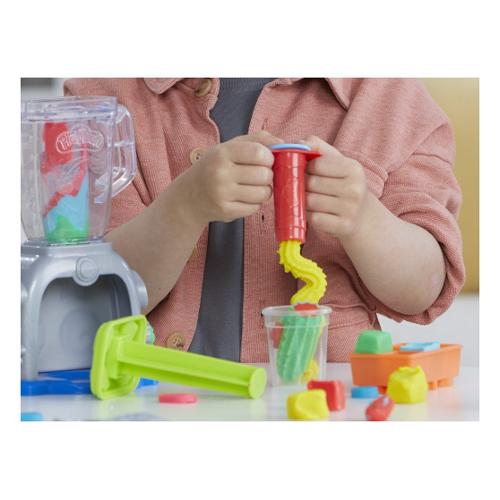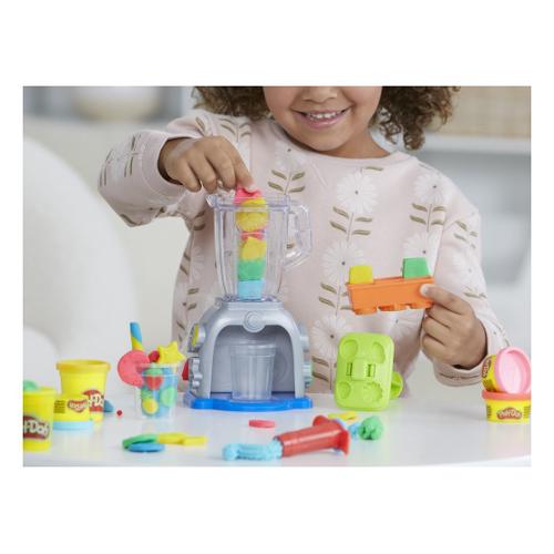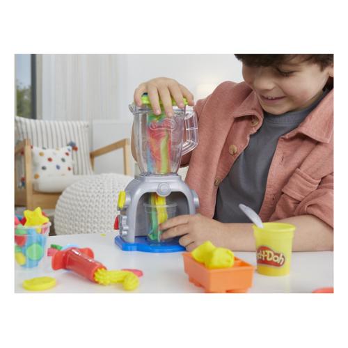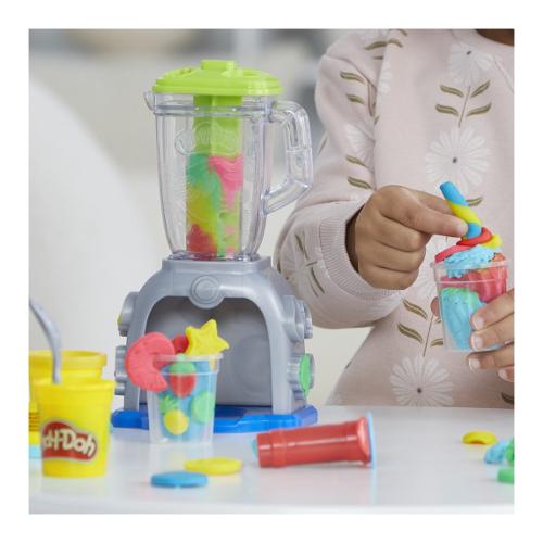 Tuffati nel gioco di fantasia con il set da gioco Play-Doh Swirlin' Smoothies con frullatore giocattolo! Questo set di cibo giocattolo consente ai bambini e alle bambine dai 3 anni in su di creare frutta e verdura fatti di Play-Doh, inserirli nel frullatore e pressarli per creare frullati finti super colorati! E quando si tratta di decorare, l'unico limite è l'immaginazione dei bambini! Panna montata rosa fatta di Play-Doh? Perché no? Finte fragole gialle? Certamente! Finti broccoli azzurri? Buona idea! I set Play-Doh come lo Swirlin' Smoothies con frullatore sono fantastici giocattoli creativi per bambini e bambine dai 3 anni in su. Hasbro, Play-Doh e tutte le proprietà correlate sono marchi commerciali di Hasbro. La confezione include: Include stampini, "frullatore", 2 barattoli plastilina da 57 gr e 3 da 28 gr colori assortiti