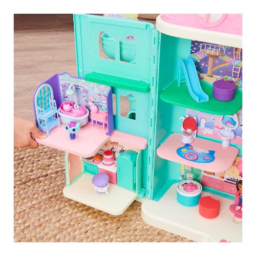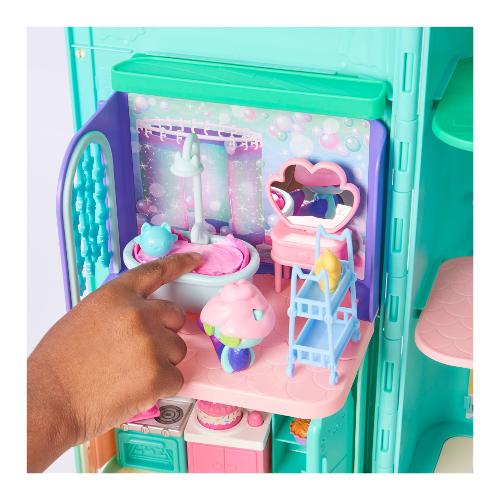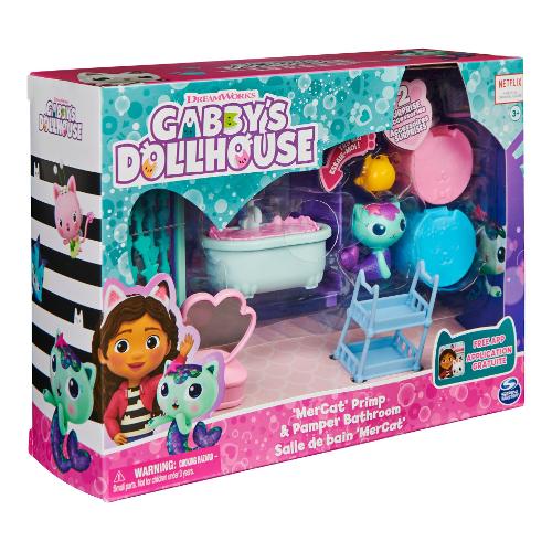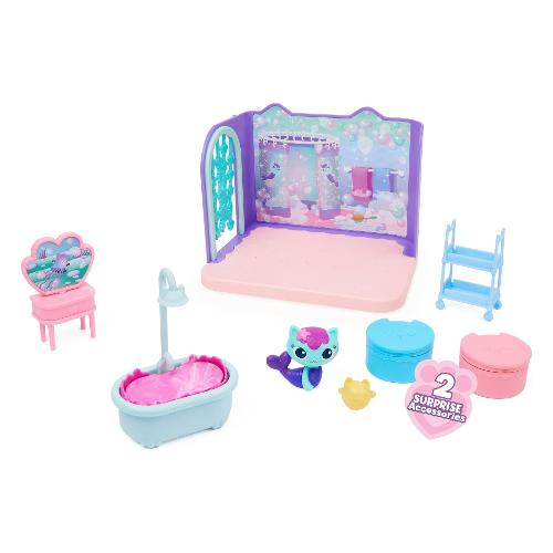 Con questo playset entrerai nella sala da bagno di siregatta e potrai ricreare le magiche avventure di gabby e dei suoi amici gattini, proprio come nella serie tv. All’interno della confezione troverai il personaggio esclusivo di siregatta, dei mobili, accessori e pacchi-consegna con all’interno delle sorprese. Replica ciò che fa gabby all’inizio di ogni puntata: fai l’unboxing dei pacchi- consegna e scopri cosa c’è all’interno: una bottiglietta di profumo e un asciugamano con una maschera al cetriolo che siregatta può davvero indossare. Scopri anche i playset cucina di dolcetto e la camera da letto di cuscigatta (venduti separatamente)