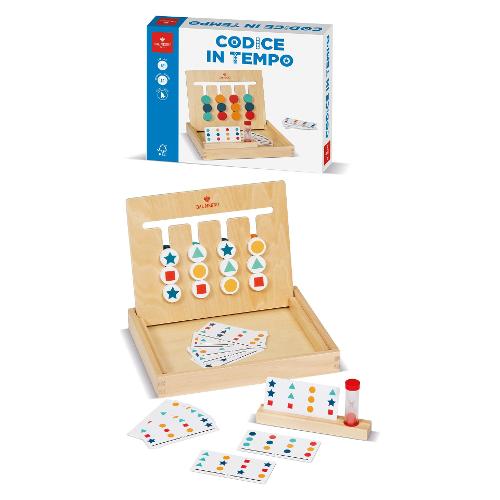Sfida il tempo e la tua abilità nel posizionare i blocchi colorati sulla base, seguendo le carte e la clessidra.