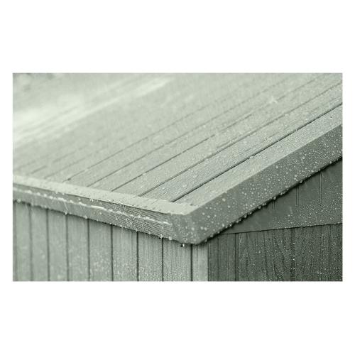 Casetta da giardino dotata di porta a due ante per l'accesso agli oggetti di più grandi dimensioni. Offre un'illuminazione naturale grazie alle due ampie finestre frontali e al lucernario in policarbonato. Struttura resistente composta da pannelli a doppia parete con intercapedine rinforzata e da struttura in metallo; il tetto resiste ai carichi neve fino a 75 kg/m²; resiste alle intemperie e ai raggi uv e non richiede alcuna manutenzione. ideale per per organizzare al meglio il tuo giardino e riporre oggetti di piccole e grandi dimensioni