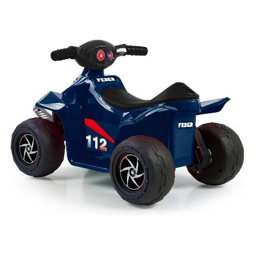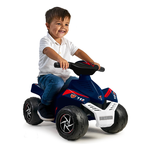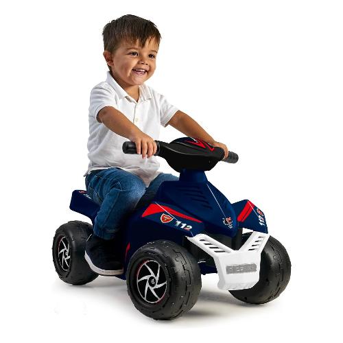 Quad racy carabinieri 6v, acceleratore a pedale, freno motore, velocità massima 2 km/h. Batteria e caricabatteria inclusi.