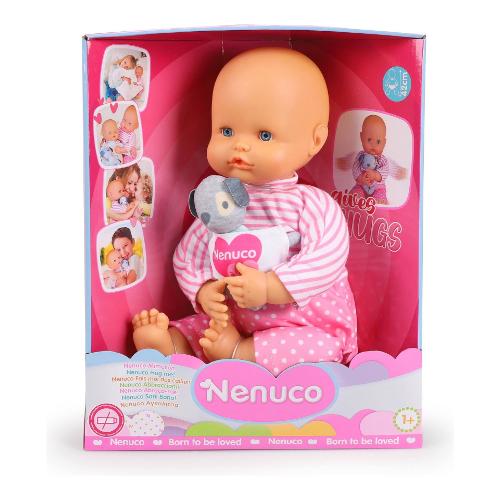 Bambola Nenuco morbida con vestitino rosa rimovibile.