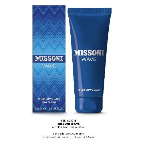 Balsamo dopobarba che riprende la fragranza wave di missoni: un'eau de toilette, del gruppo agrumato aromatico, frizzante grazie alla lavanda, che crea un’atmosfera rilassante esaltando note marine che regalano al profumo onde fresche e vibranti. Il fondo è caratterizzato da accordi di vaniglia. La sua sensualità bilancia la freschezza delle note precedenti aggiungendo degli accenti caldi e seducenti. Note di testa: note marine; note di cuore: lavanda di provenza; note di fondo: vaniglia.