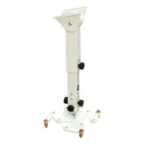 Supporto a soffitto funzionale, robusto, sicuro compatibile con la maggior parte dei proiettori presenti in commercio grazie allo speciale sistema di piedini regolabili ed ai braccetti asolati. Lo snodo centrale, inoltre, consente al piano di appoggio un’inclinazione di 90 gradi ed una rotazione di 360. Micro regolazione dei quattro assi di puntamento mediante 4 manopole, azionabili senza utilizzo di attrezzi.