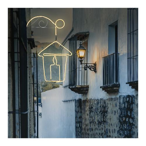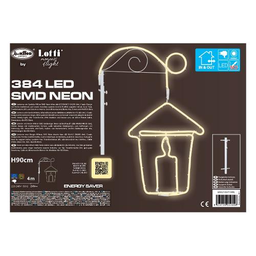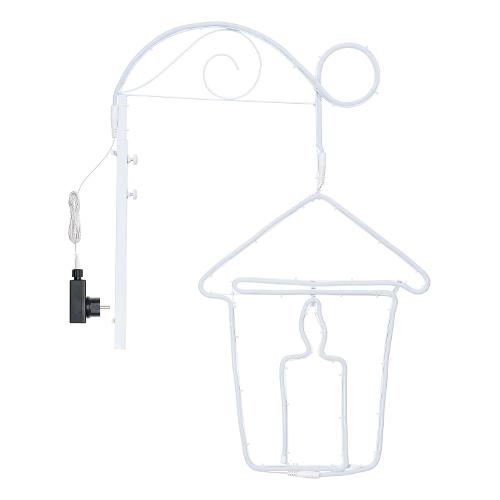 Lanterna con Candela H90cm SMD Neon bifacciale LED BIANCO CALDO (4m), Classic Design con forme tradizionali, può essere installata a parete tramite il solido supporto incluso, Luce Fissa, Trasformatore 24V, uso Esterno e Interno, Cavo Alimentazione Bianco 4m, Dimensioni 46xH55-90cm