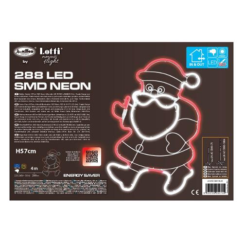 Babbo Natale H57cm SMD Neon bifacciale LED ROSSO e BIANCO (3m), Classic Design con forme tradizionali, Telaio metallo verniciato bianco, può essere installata a parete o a terra tramite Base Opzionale non inclusa, Abbinabile a Basi e Accessori serie LN AC, Luce Fissa, Trasformatore 24V, uso Esterno e Interno, Cavo Alimentazione Bianco 4m, Dimensioni 39xH57cm